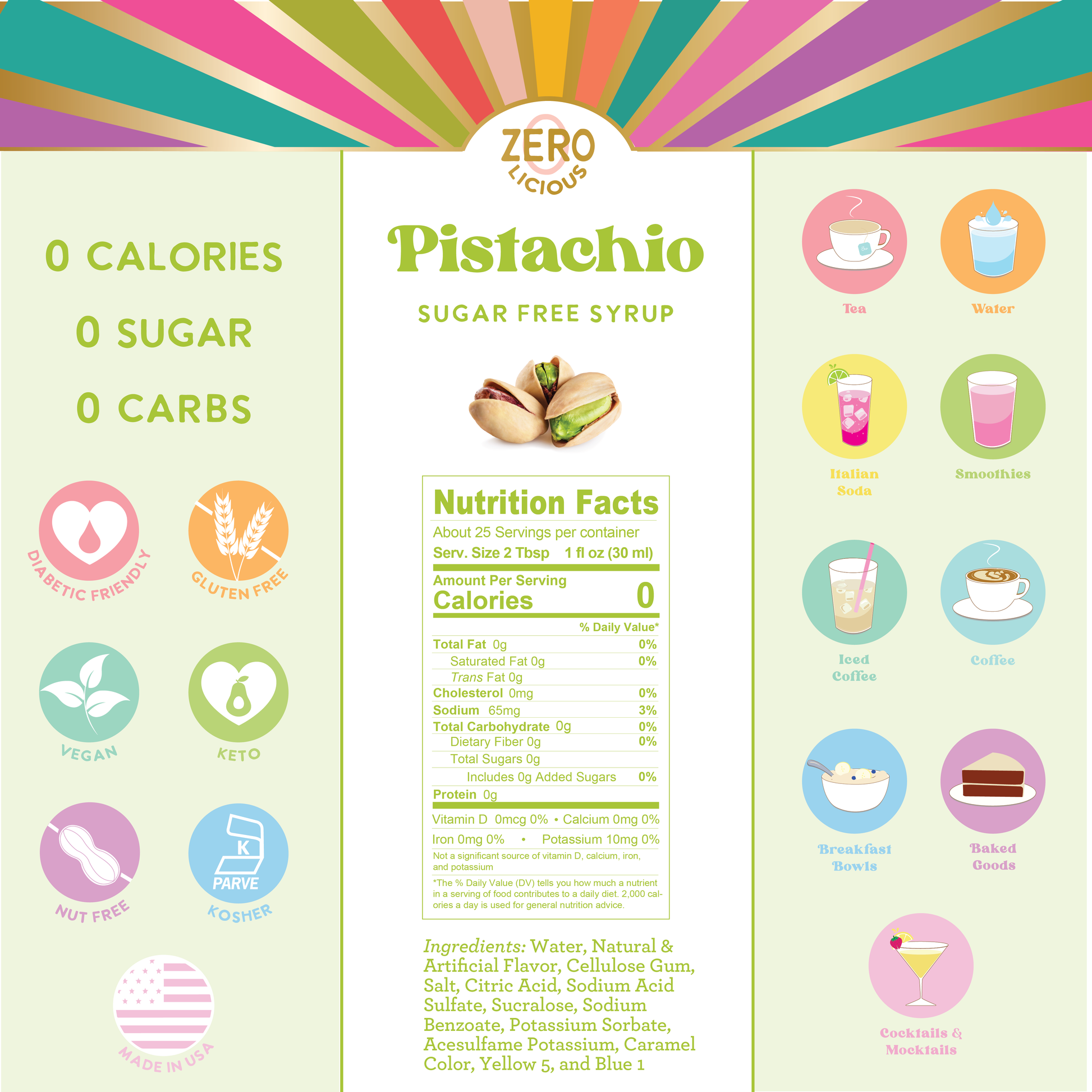 Create an elegant coffeehouse experience at home by adding a splash of our pistachio syrup to your home brews: coffee, tea, espresso drinks .... even hot chocolate! The nutty goodness will elevate your regular cuppa joe into a special moment. All our syrups are zero-cal / zero-carb, so use a little ... or a lot! You decide how nut-a-licious you want to be!