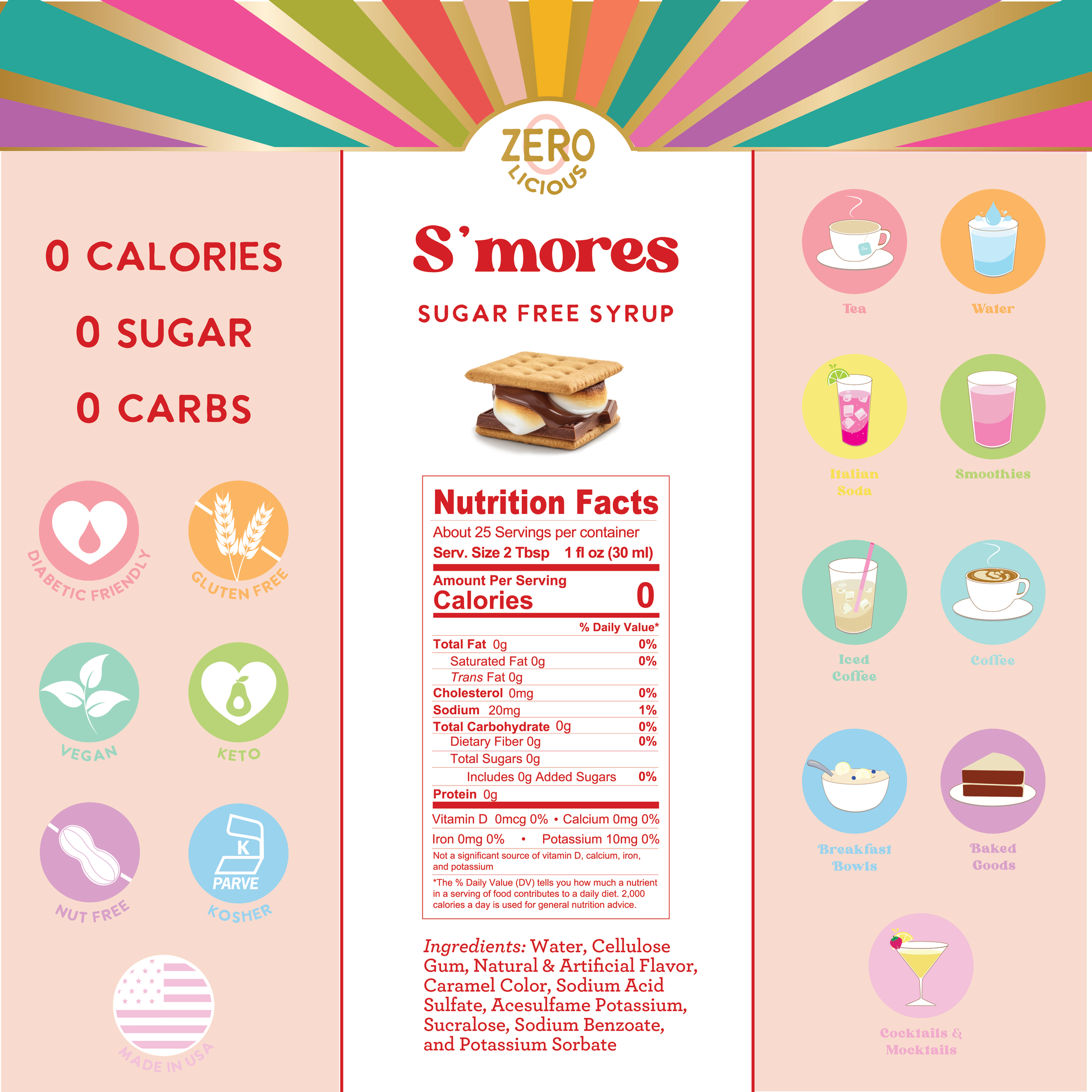 Why limit your favorite campfire treat to just the summer? With S'mores flavored syrup you've got the flexibility to make everything taste like the gooey treat: lattes, cappuccinos, smoothies, warm cereal, and more! Since all our syrups are zero-cal / zero-carb, use a little ... or a lot! You decide how s'more-a-licious you want to be!